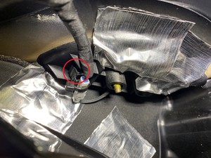 NoteMake sure the connector is on the left side of the vehicle and align the sensor end with the sensor carrier. Peel the red backing from the double sided tape piece for piece while installing.