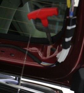 NotePull the wire through and remove the wire installer tool from the liftgate glass.