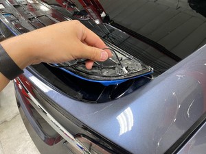 - Apply masking tape to areas around the liftgate and the active spoiler to prevent damage to the vehicle.