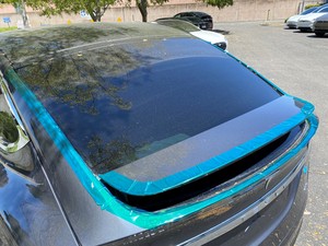 - Apply tape to secure the backlight glass to the body while the urethane cures.