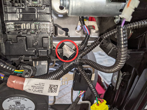 - Connect the driver seat microphone, and then secure the harness clip onto the seat back foam.