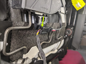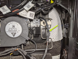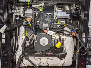 - Connect the driver seat cushion ventilation electrical connector to the cushion fan.