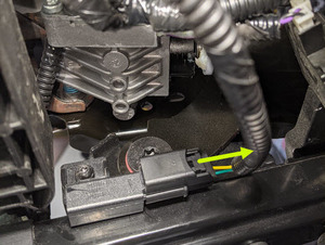 - Slide the OCS harness electrical connector upward to remove it from the SBR bracket, and then disconnect the electrical connector.