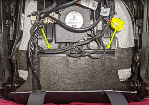 - Secure the female side of microphone connector and harness clips (x2) onto seat back suspension.