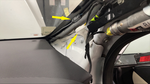 - Install the heater grid harness to the harness guides (x2) and connector retainer.