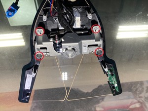 Position the triple camera assembly into the vehicle, and then install the screws (x4) that attach the mounting plate to the windshield.