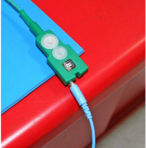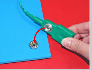 Snap the button connector on the ground cord to the button connector on the ESD mat.