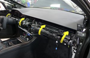 Remove and discard the bolts (x6) that attach the front passenger airbag to the instrument panel sub-assembly.