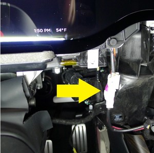 - Release the instrument panel trim electrical harness, and then disconnect the electrical connector.