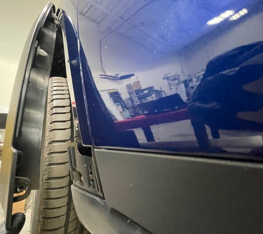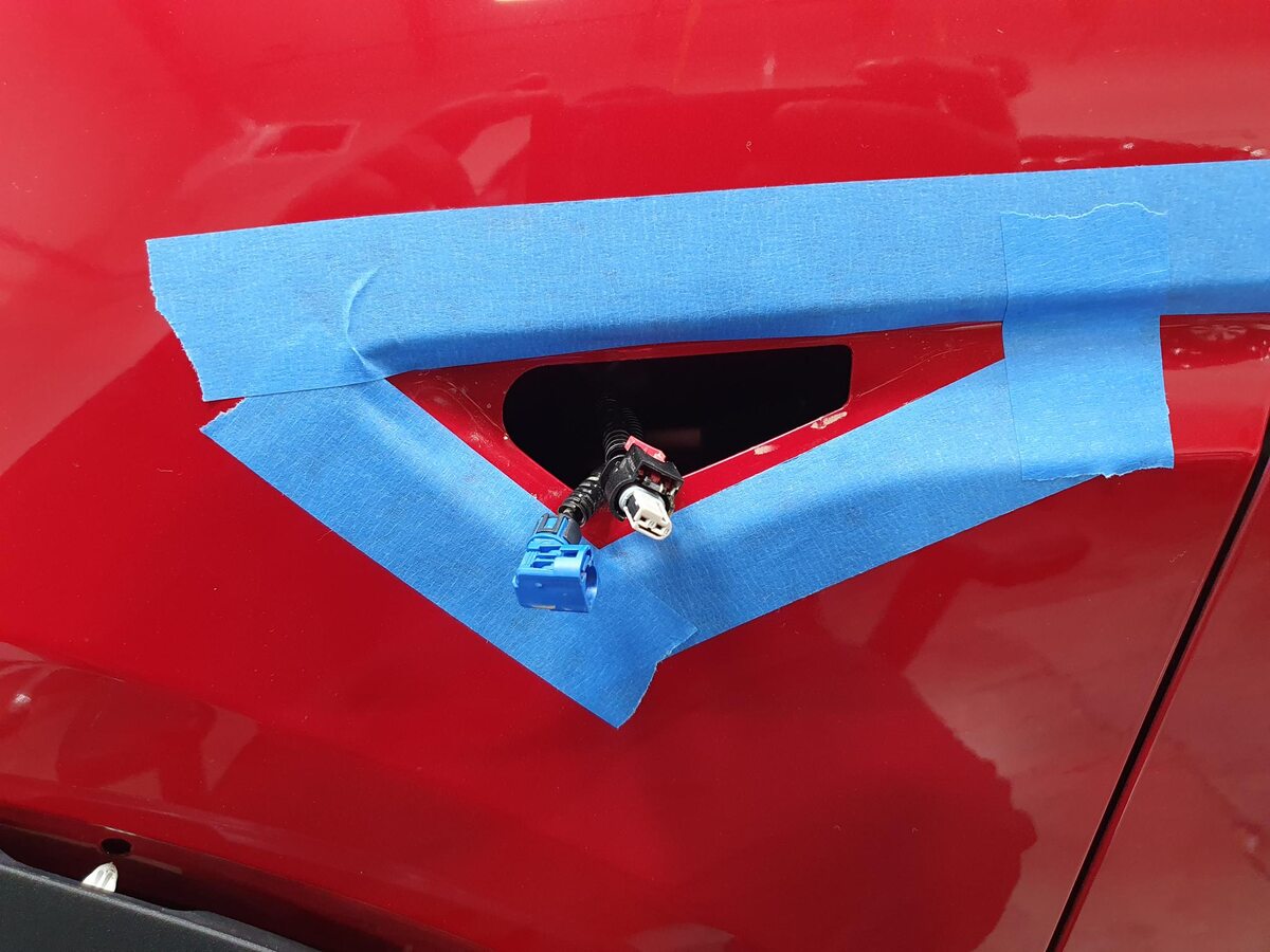 - Remove the masking tape from the LH front fender assembly at the edges of the LH front side repeater.