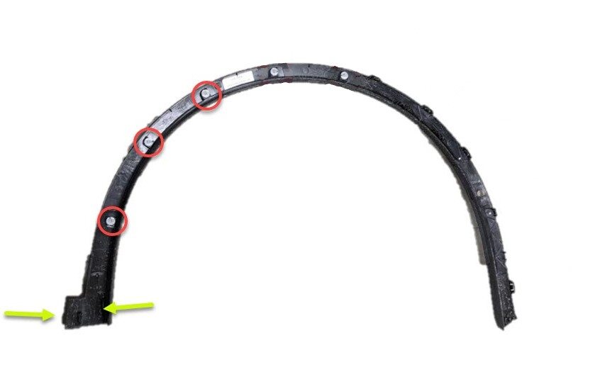 rear portion of the LH front fender garnish to the LH rocker panel molding.