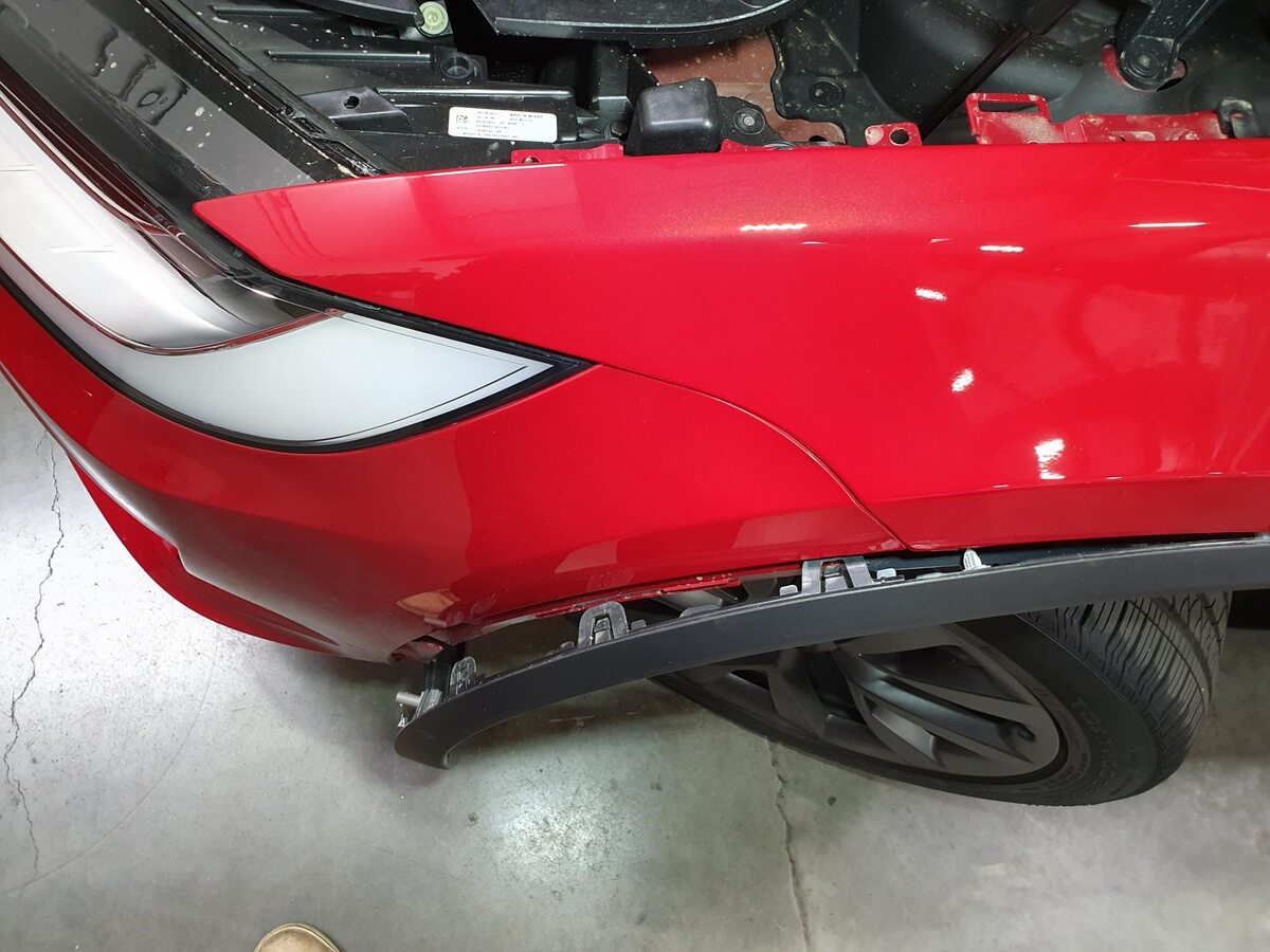 - Position the front fascia harness into the front fascia assembly, and then secure the clips (x9) that attach the harness to the assembly.