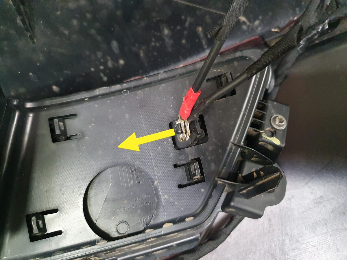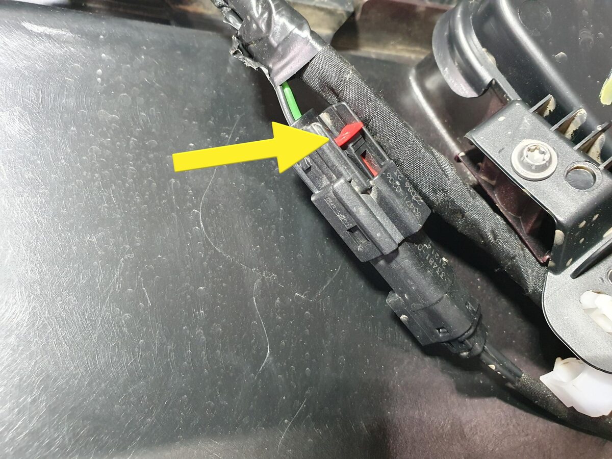 Note1x connectors, Engage locking tab, Located behind RH wheel arch liner