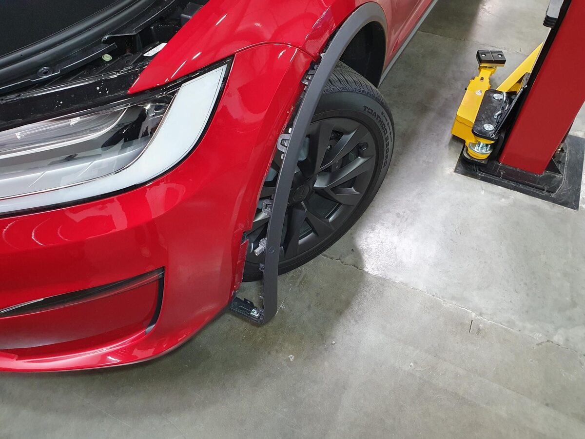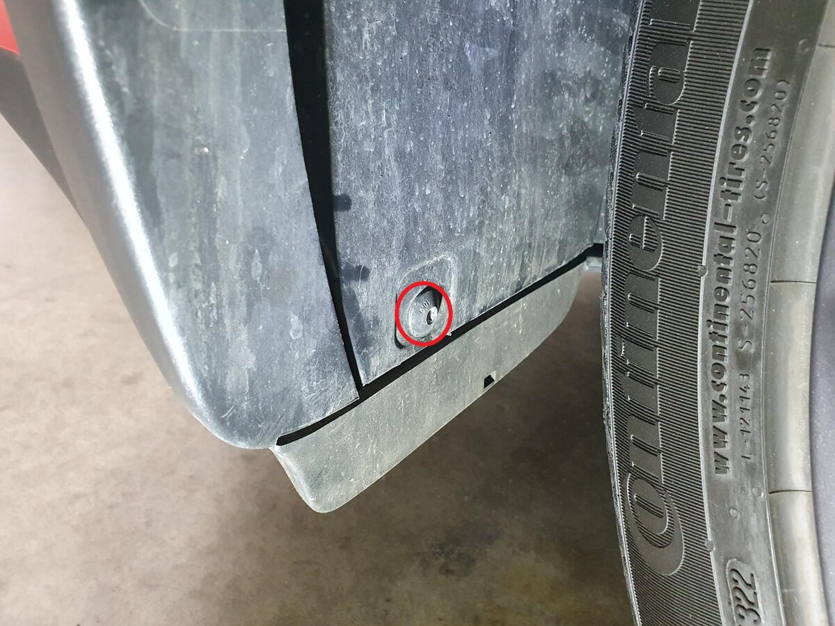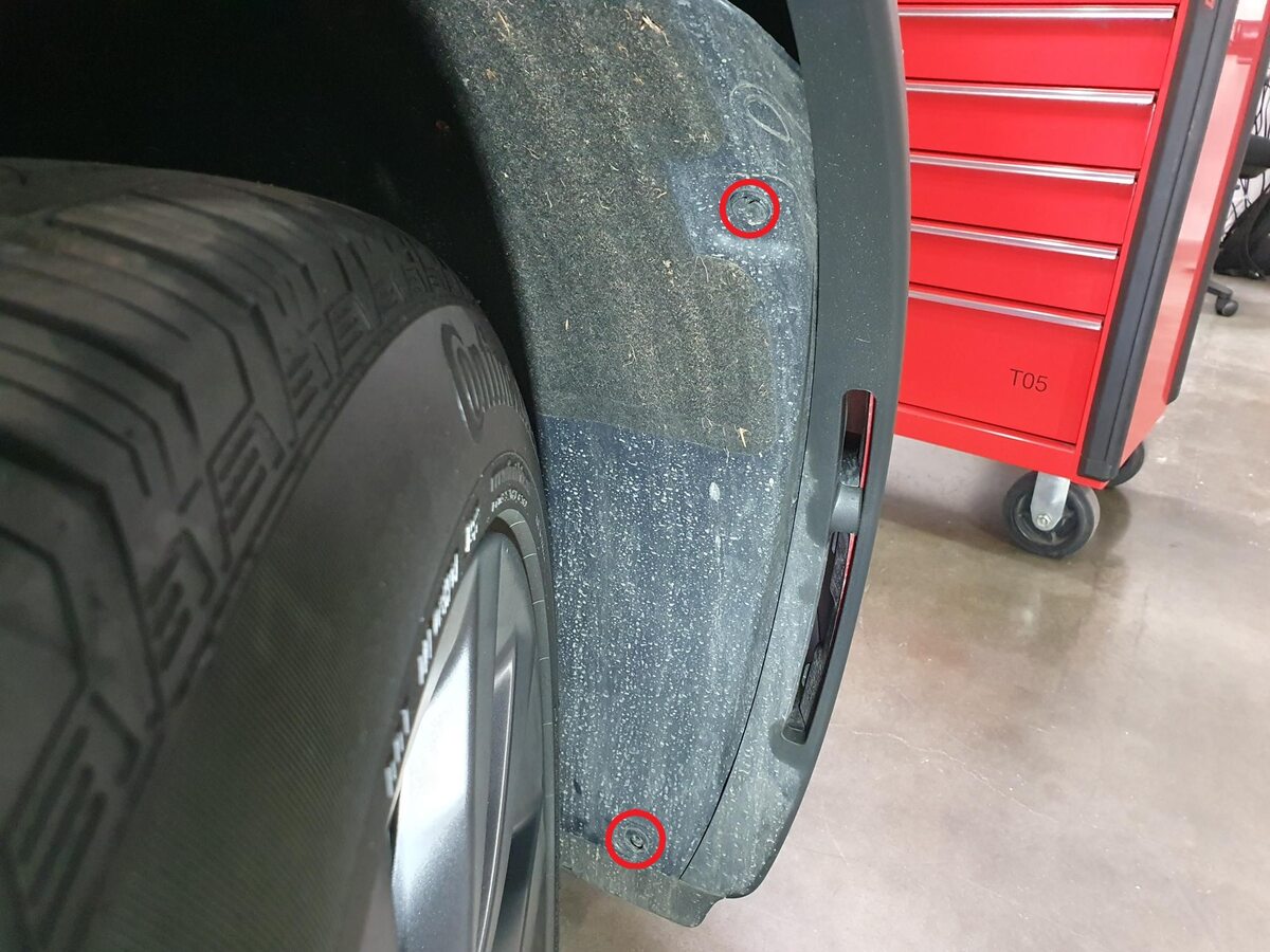 Note1x bolt, T30, Torque 2 Nm, 3x clips. Move front portion of wheel liner backwards to access fairing.