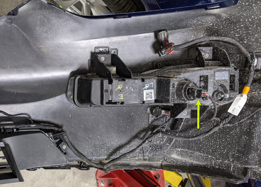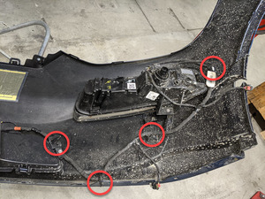 - Release the clips (x9) that attach the front fascia harness to the front fascia assembly, and then remove the harness from the assembly.