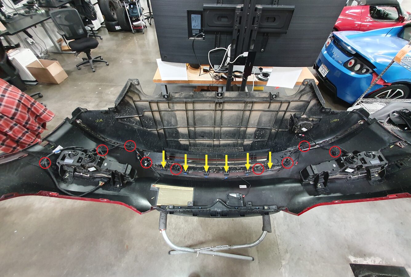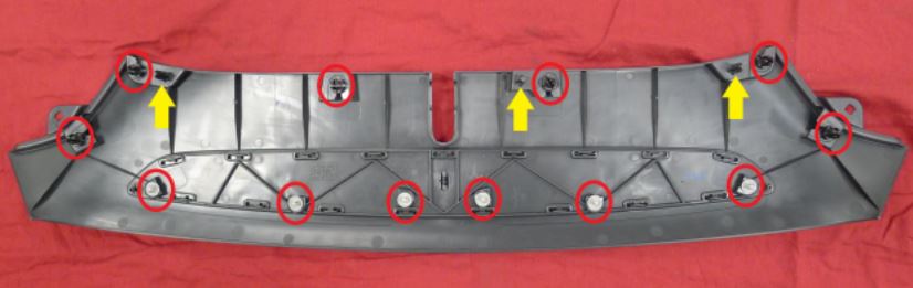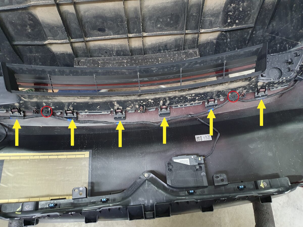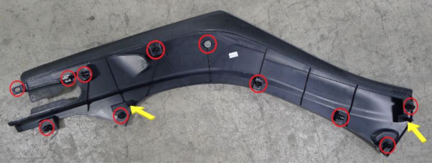 Note2x clips, 8x tabs, Careful to not damage dummy ultra sonic sensor when removing garnish