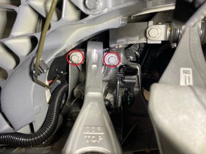 | Bolts (x2) that attach the rear upper fore link to the subframe |