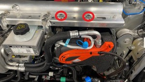 - Secure the A/C compressor HV harness clip to the body.