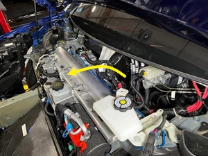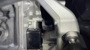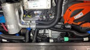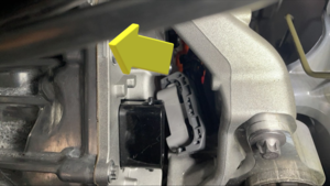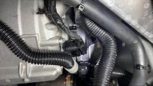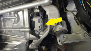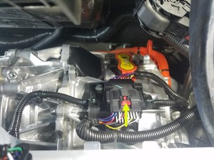 - Feed the front drive unit logic connector in under the motor mount and coolant hose.