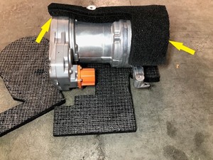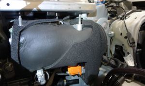 - Remove the adhesive backing, and then install the acoustic blanket on the A/C compressor.
