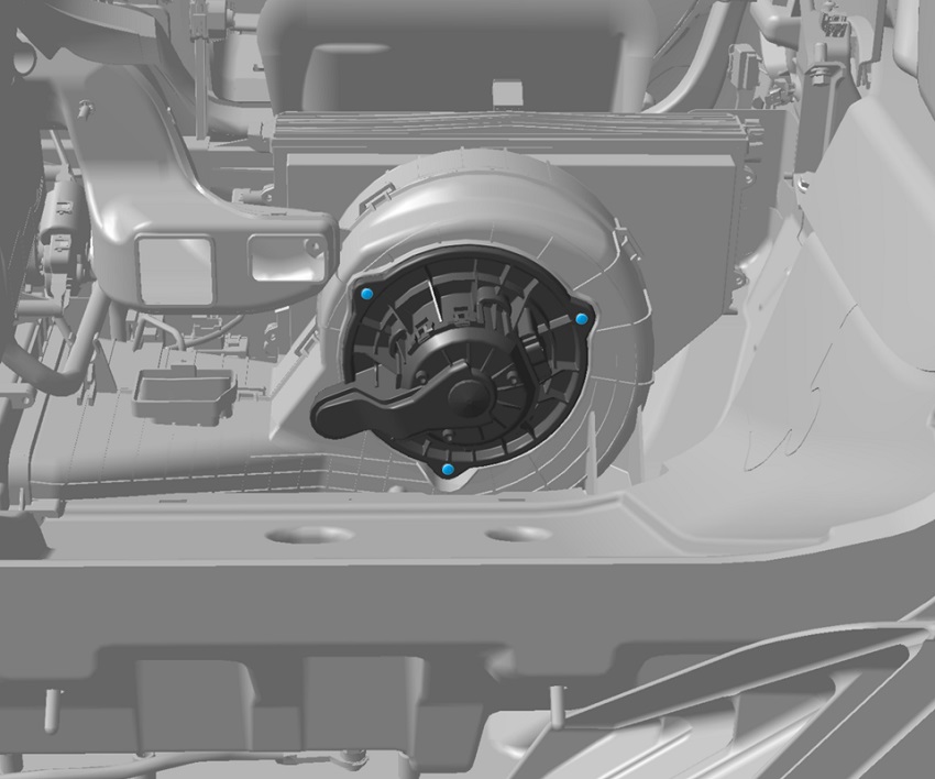 - Remove the fan motor from the front HVAC assembly.