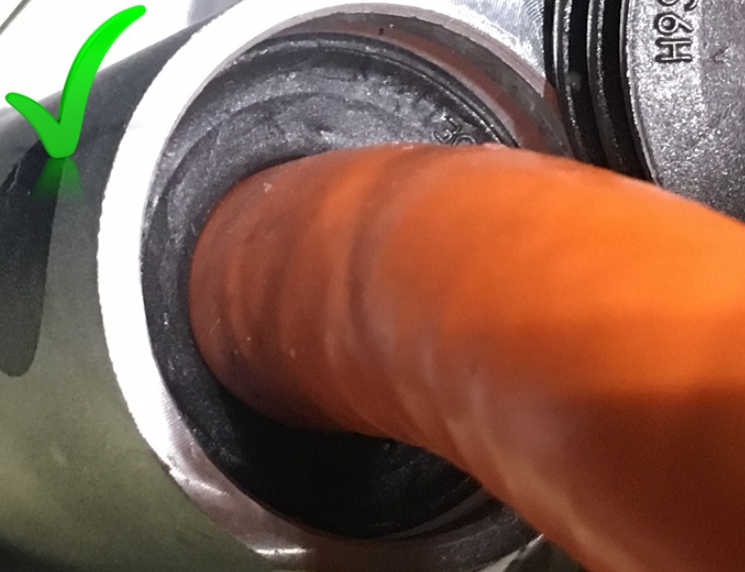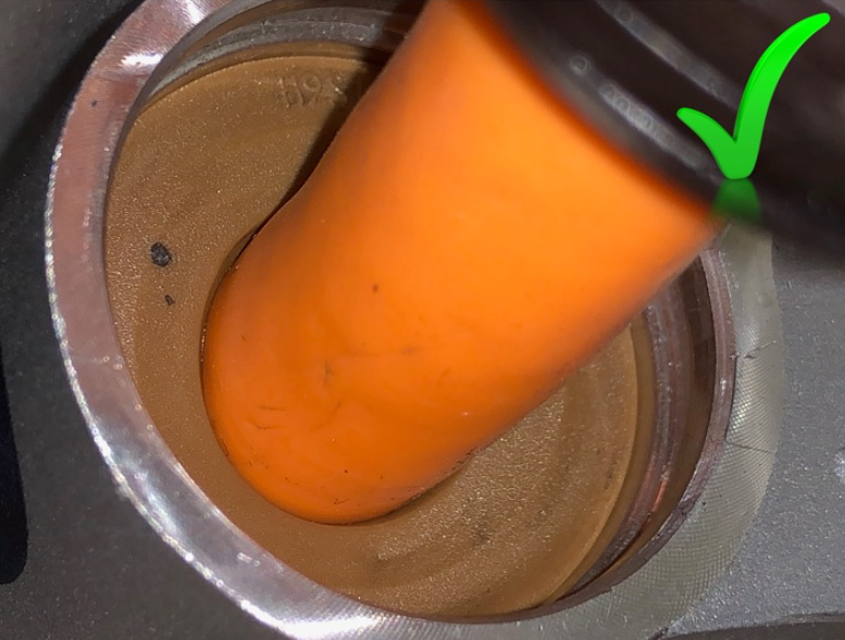 NoteMake sure the O-rings are evenly seated, as pictured.NoteThe retaining collars, installed in the next step, will push the O-rings to the correct depth.Tip: Use a 1/4 inch extension to help seat the O-ring. If needed, apply P-80 to aid with O-ring installation.