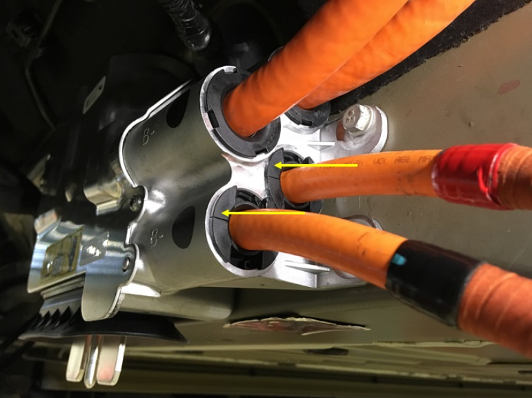 - Install the bolts (x3) that attach the HV rapid splitter to the vehicle (torque 8 Nm).