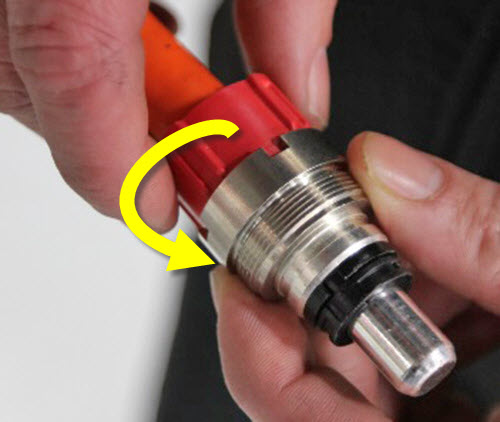 - Install the O-ring on the HV harness O-ring installation tool (found in the Rapid splitter tool kit), and then use the tool to install O-rings on the B+ and B- FJB HV cables.