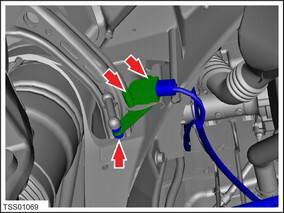 - Remove the screws (x2) that secure the ride height sensor to the body (torque 7 Nm).