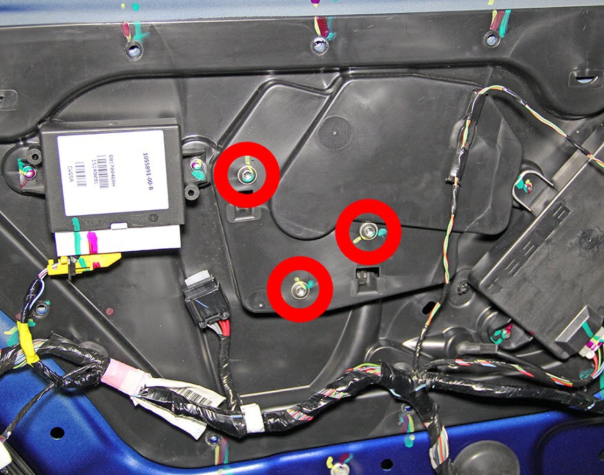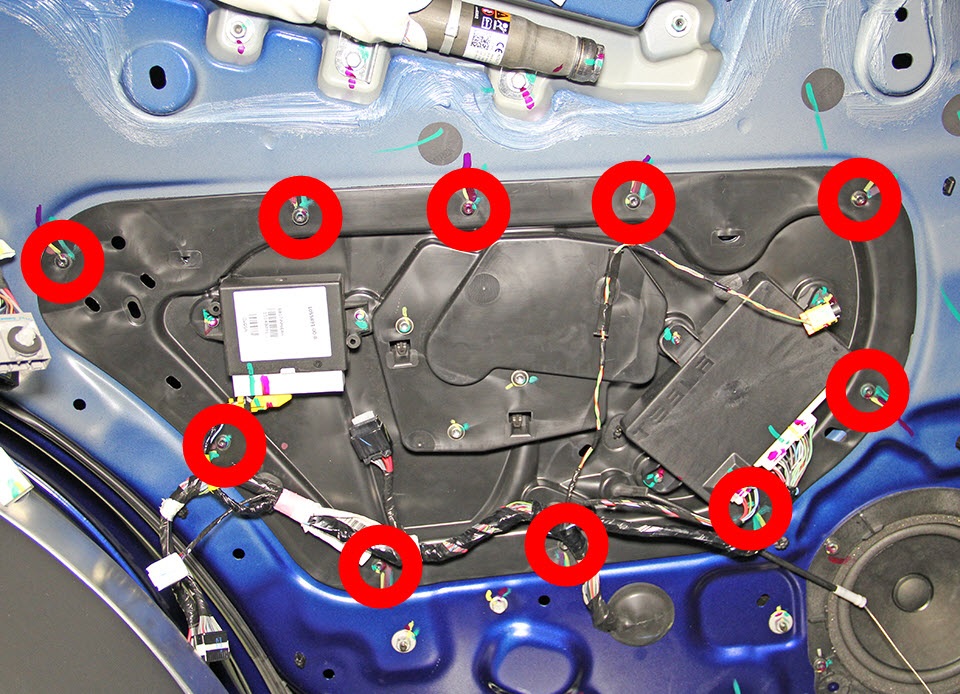 - Remove the screws (x3) that secure the closeout panel to the window motor (torque 1.8 Nm).