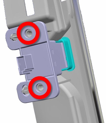 Remove the screws (x2) that secure the glove box switch to the touchscreen surround (1 Nm), and then remove the glove box switch from the touchscreen surround.