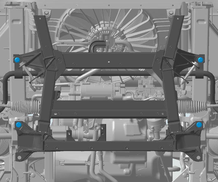 - On each side of the vehicle, remove the bolt (torque 20 Nm) that attaches the condenser fan module bracket to the subframe.
