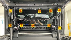 With assistance, remove the nuts (x10) that secure the LH falcon door upper class, and then remove the LH falcon door upper glass.