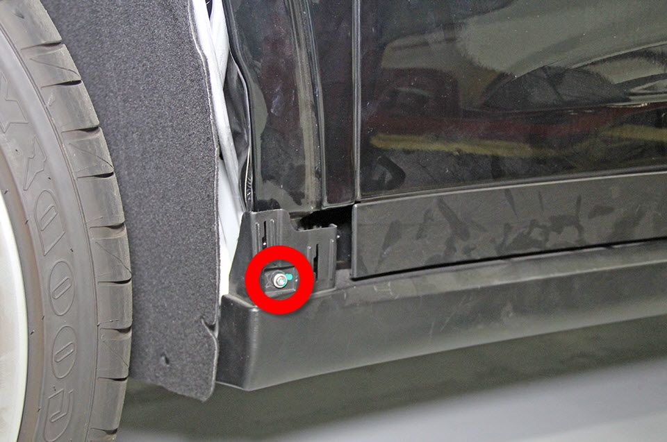 - Remove the bolt that secures the bottom of the rear wheel fairing to the rocker panel (torque 3 Nm).