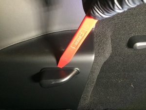 Note3x push clips, One is hidden between 3rd row seat and trunk side carpet panel