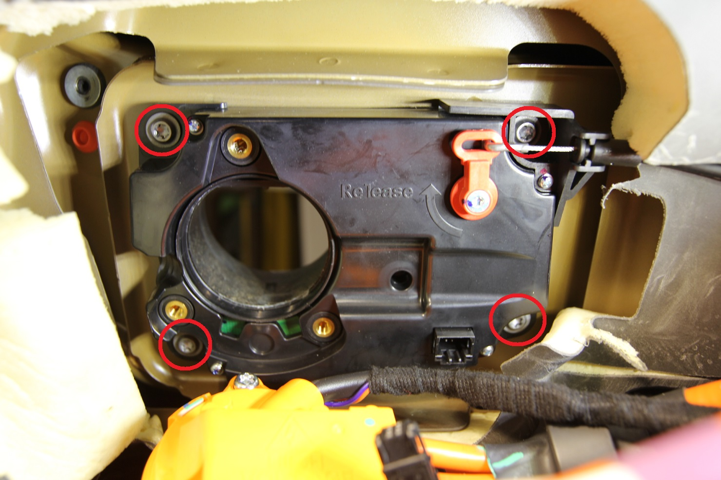 - Remove the bolts (x4) that secure the ECE charge port assembly to the body (torque 5 Nm), and then remove the ECE charge port assembly.