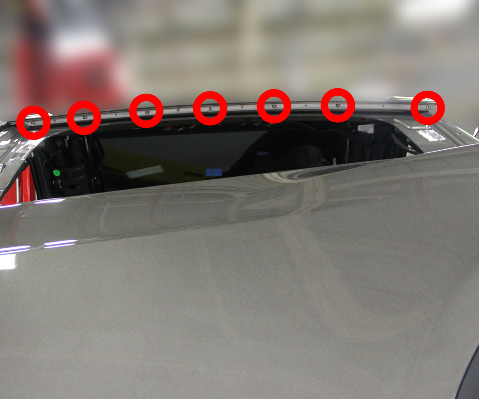 - Remove the fasteners that secure the upper brightwork (torque 4 Nm).