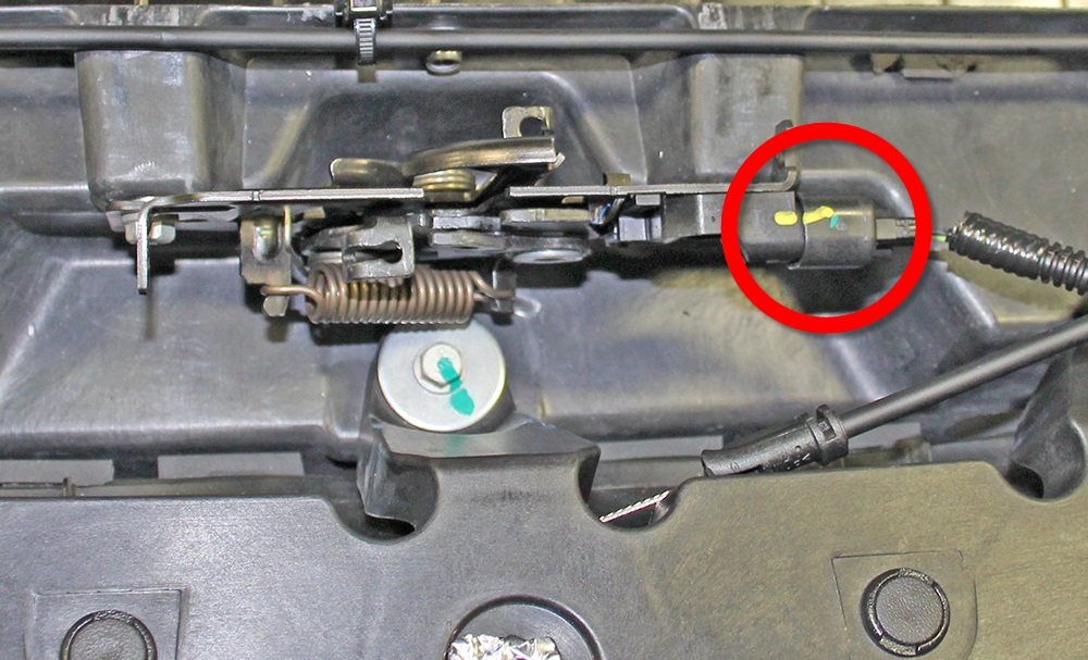 - Disconnect the harness connector from the LH side of the latch assembly.