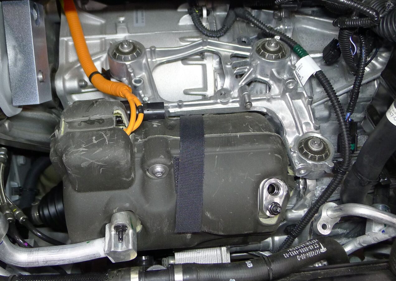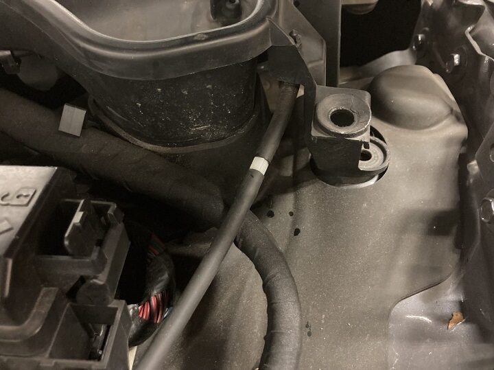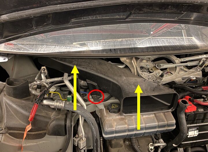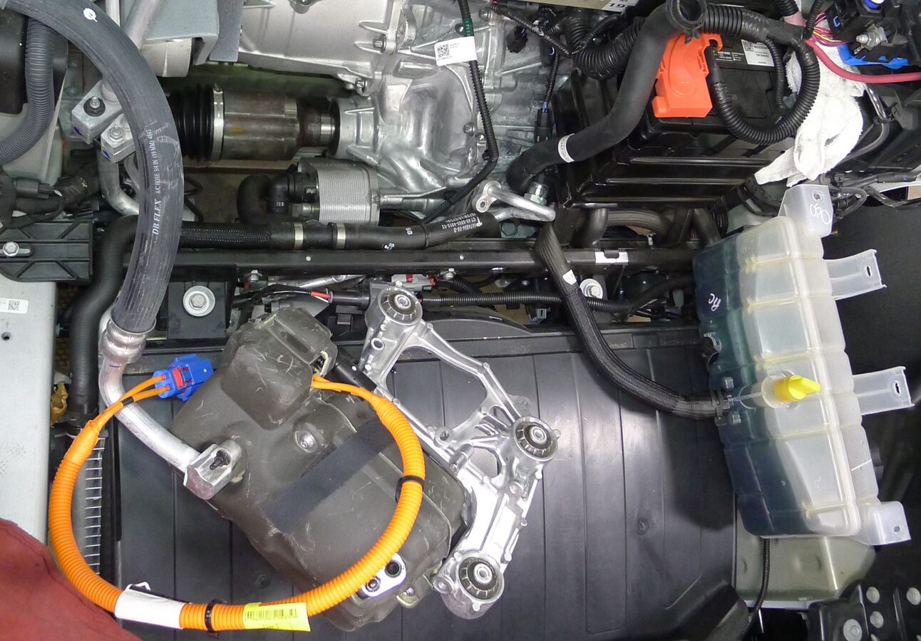 Install the fir tree clips securing the A/C compressor HV harness to the front drive unit