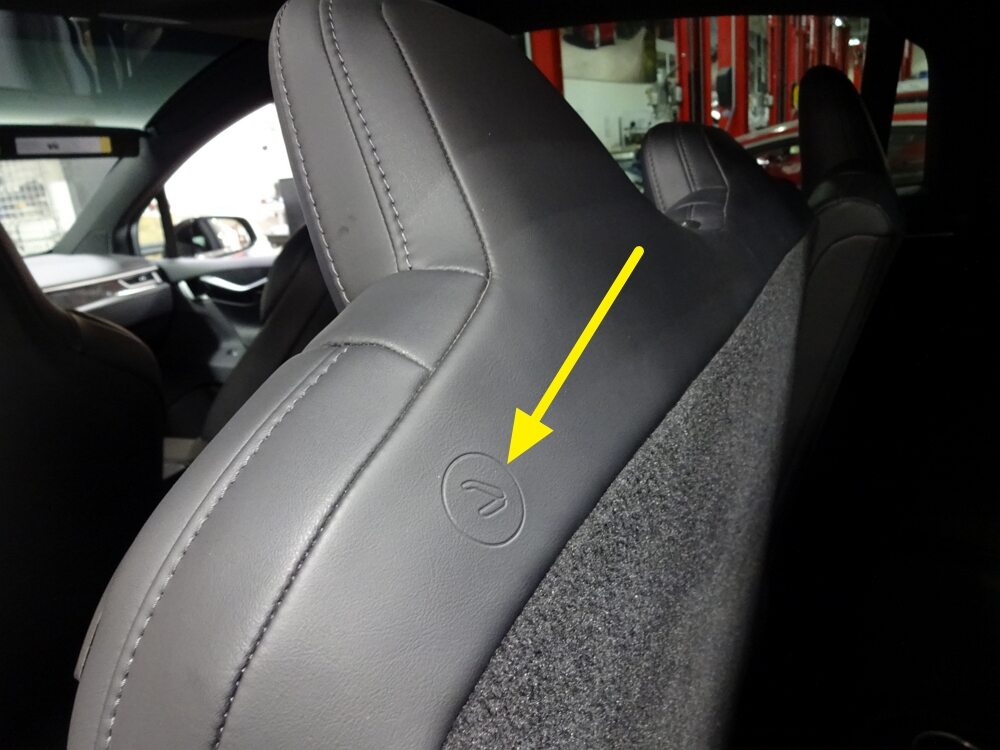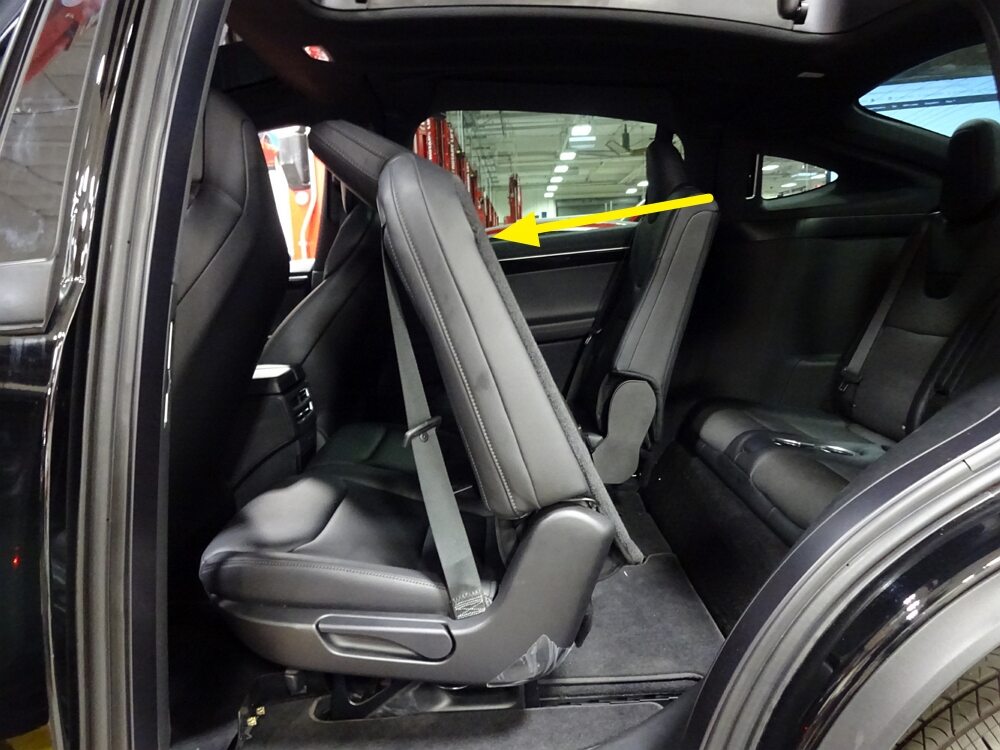 NotePress button located on LH 3rd row seat back assembly near headrest, lift seat back into an upright position