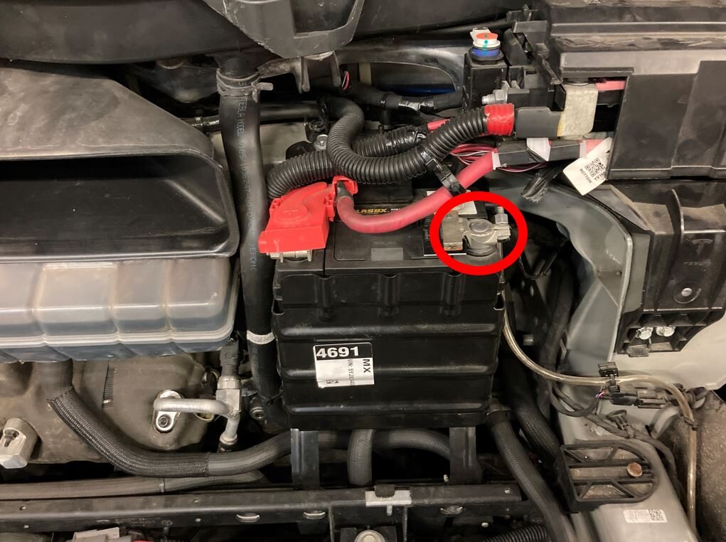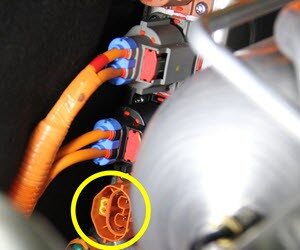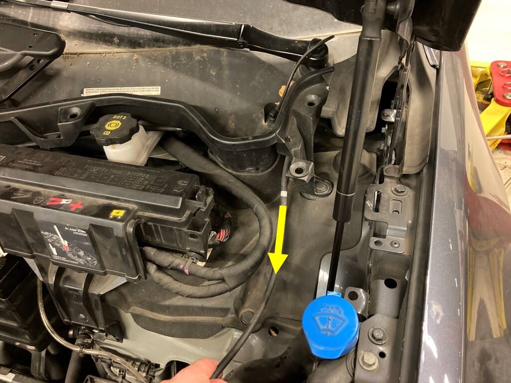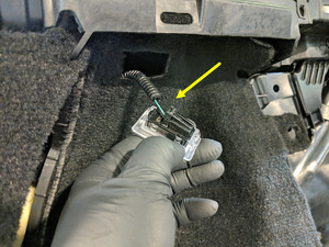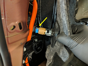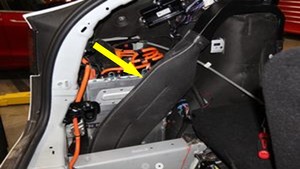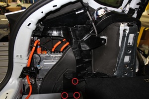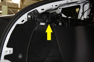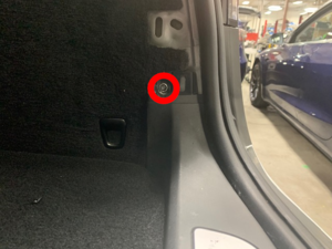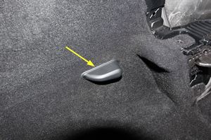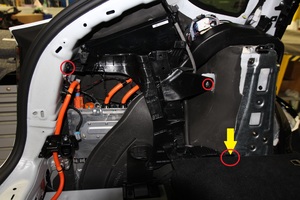 - Verify charge port mechanical release cable is in proper position in trunk side carpet panel