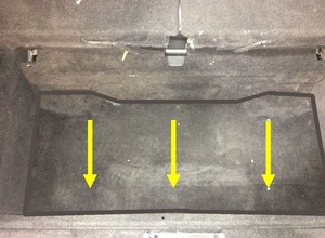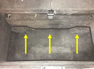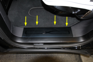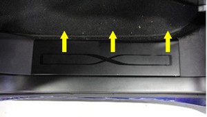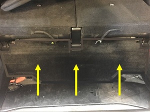 Note5x push clips, One is hidden between 3rd row seat and trunk side carpet panel