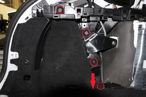 Remove fasteners securing LH trunk trim bracket and remove from vehicle
