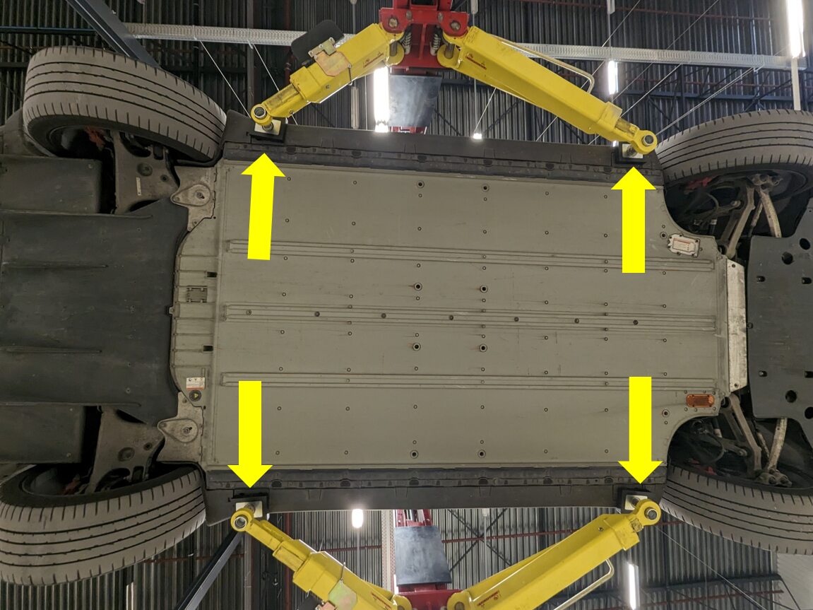 NoteSet air suspension to Jack Mode, Via Controls > Service > Jack Mode, Raise lift until arms contact the lift points