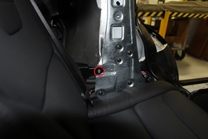Install screws securing C-pillar lower panel to LH parcel shelf support