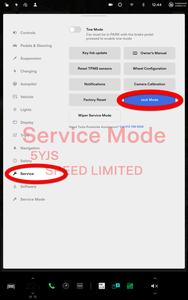 NoteLower rack arms fully and move them from under vehicle, Remove air suspension from "Jack Mode", Via Controls > Service > Jack Mode