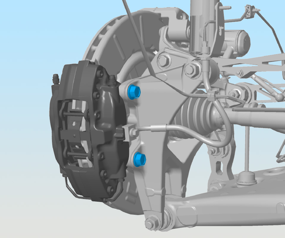 - Remove and discard the bolts (x2) that attach the caliper to the knuckle (torque 120 Nm).