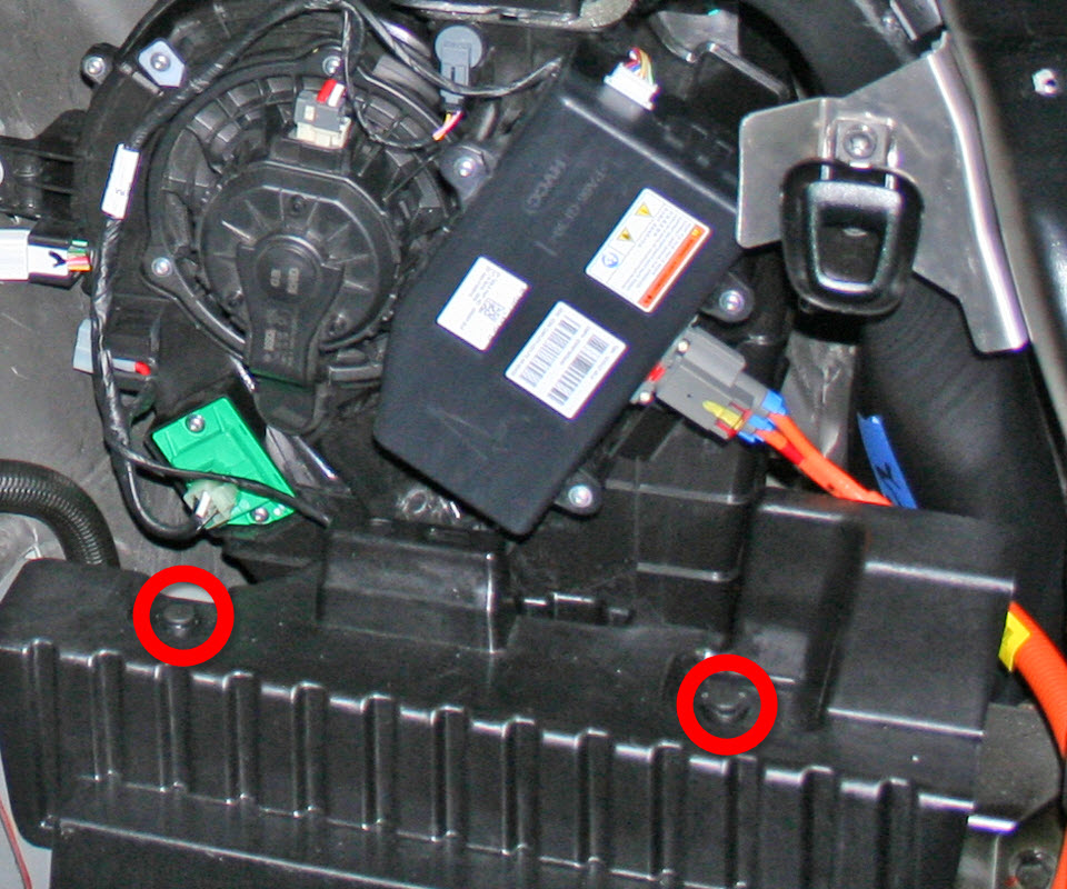 - Working from inside the vehicle, disconnect the LV connections (x2) from the front of the HVAC assembly.