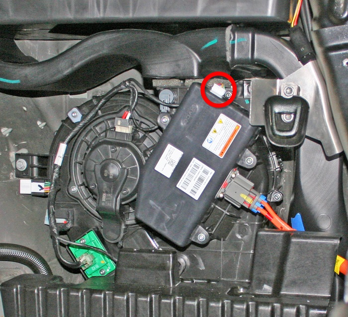 - Disconnect the 12V electrical connector from the top of the PTC heater.