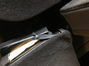 - Use a trim tool to release the clips at the top of the RH seat belt escutcheon, and then separate the seat belt escutcheon from the seat frame.